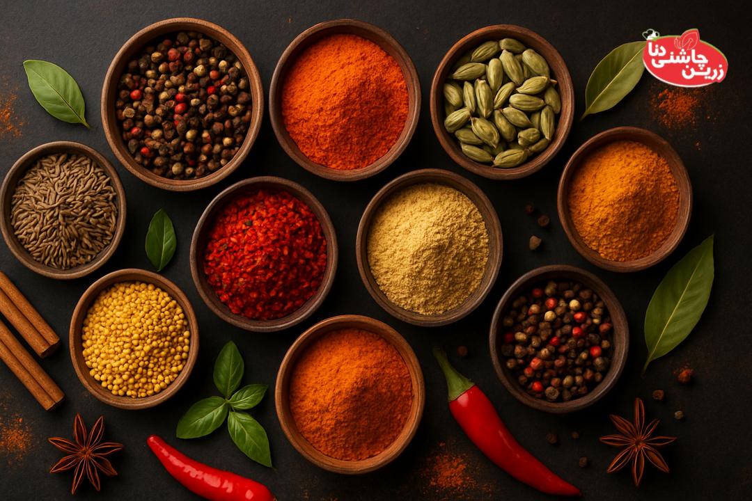 نقدم لكم جميع أنواع البهارات المطحونة بالجملة من مصنع زرين چاشني دنا – إنتاج إيراني عالي الجودة، معتمد من وزارة الصحة ومع تحليل مخبري رسمي.